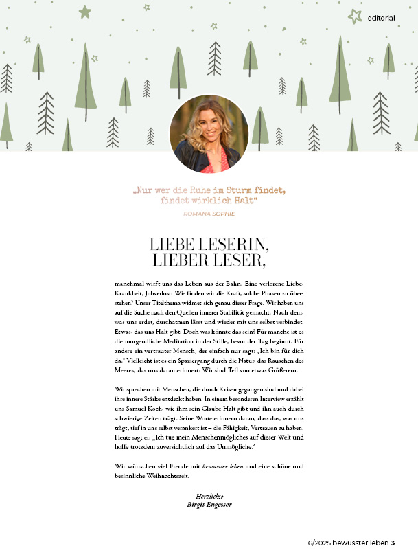 bewusster leben 6/2025 ab 29. Oktober im Handel: Die Themen. Editorial.