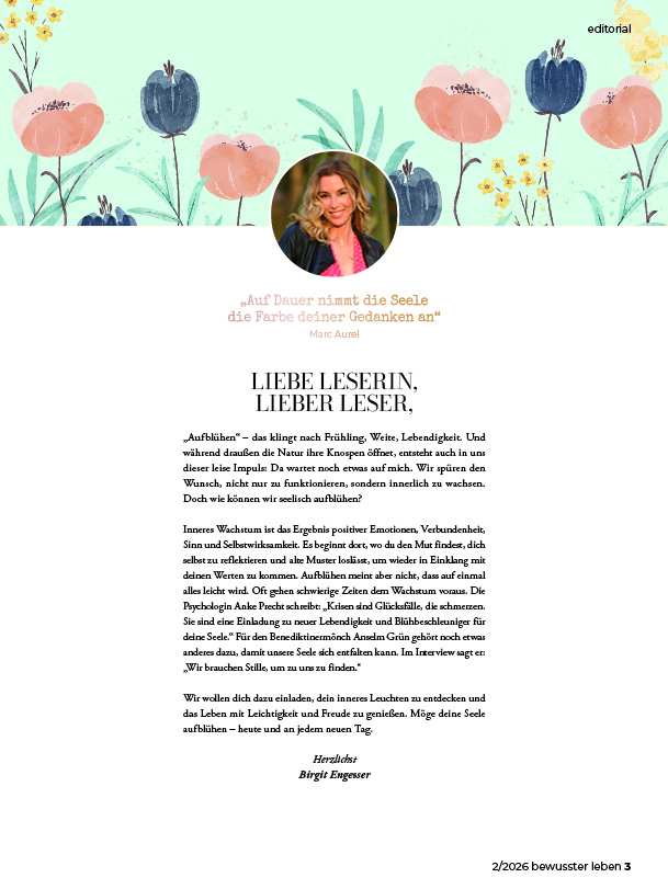 bewusster leben 1/2026 Jetzt im Handel: Die Themen. Editorial.