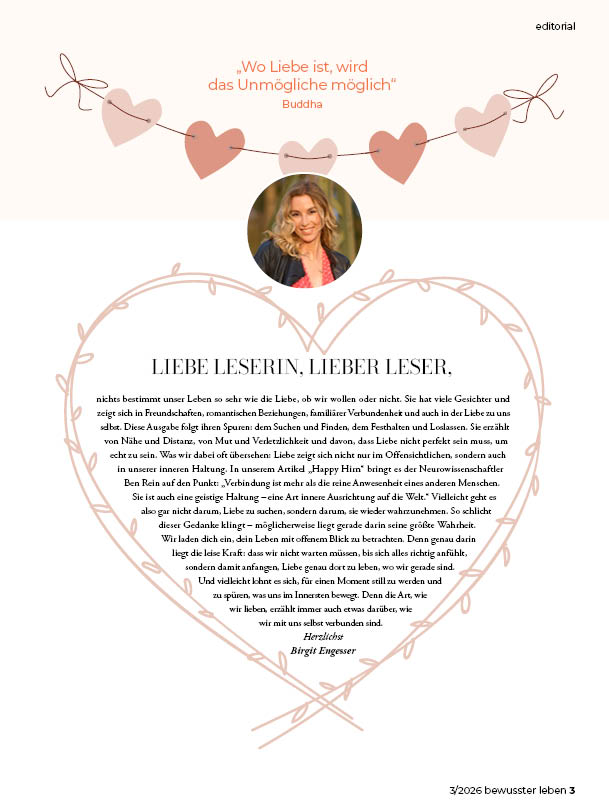 bewusster leben 2/2026: Jetzt im Handel: Die Themen. Editorial.