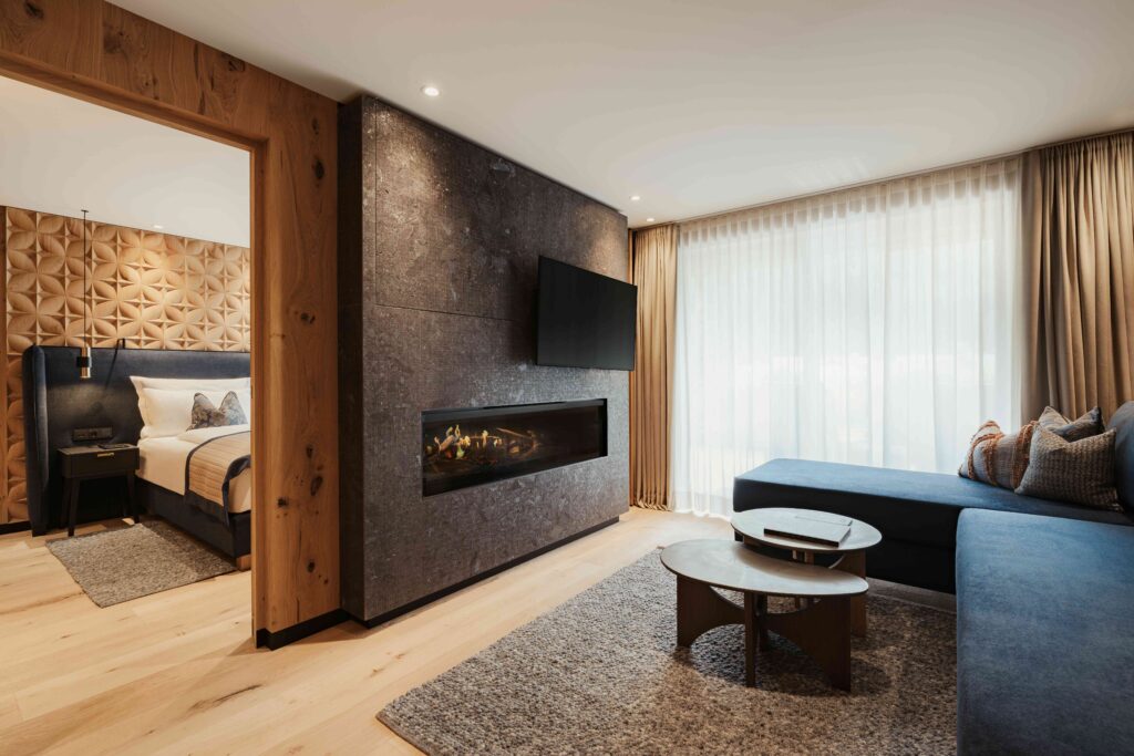 Ein zentraler Ort der Regeneration ist das Savinela SPA, benannt nach einer heimischen Blume. Inspiriert von der Kraft der Natur bietet es wohltuende Anwendungen wie Heu- und Arnika-Rituale, eine Panorama- und Heusauna, eine Eisgrotte sowie einen beheizten Outdoor-Pool mit Blick auf die umliegenden Gipfel. Hier entsteht ein harmonisches Zusammenspiel aus Stille, Wärme und Bewegung – ideal, um neue Energie zu schöpfen.