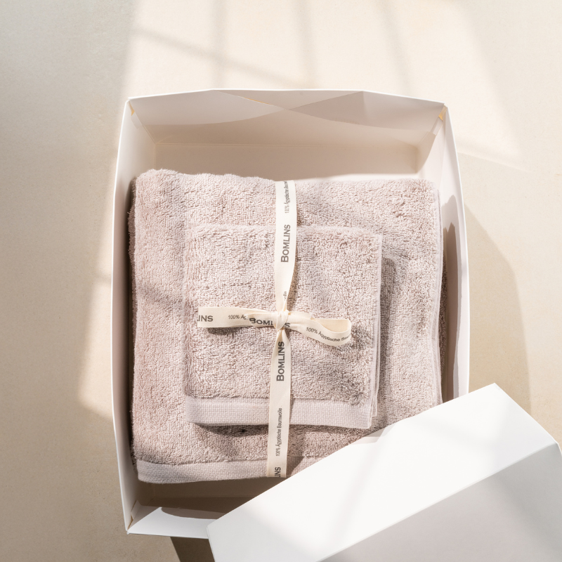 Was uns täglich berührt, sollte etwas Besonderes sein – Bomlins zeigt wie. Feinste GIZA-Baumwolle, plastikfrei verpackt, klimaneutral versendet. Ein Handtuch, das Geborgenheit schenkt.