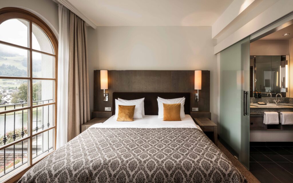 Eingebettet in die imposante Bergwelt der Kitzbüheler Alpen liegt das Schlosshotel Kitzbühel – ein Rückzugsort, an dem alpiner Stil und moderner Luxus auf harmonische Weise verschmelzen. Im Stil eines Tiroler Schlosses erbaut, thront das Resort auf der Sonnenseite des Tals, direkt am hoteleigenen 9-Loch-Golfplatz. Mit seinen Türmen und Erkern aus Naturstein, dem Schindeldach und den hölzernen Fensterläden fügt sich das Haus harmonisch in die Landschaft ein. 112 Zimmer und 38 Suiten begeistern durch edles Design, warmes Licht und großzügige Balkone mit atemberaubendem Blick auf den Wilden Kaiser und die legendäre Streif, eine der berühmtesten Skiabfahrten der Alpen.